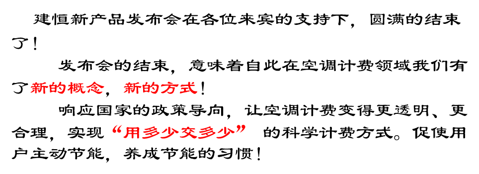 今天是建恒智慧空调专用表E3/F3新产品上市的日子,也是一个划时代的日子,也是改变世界空调计费方式的日子!
